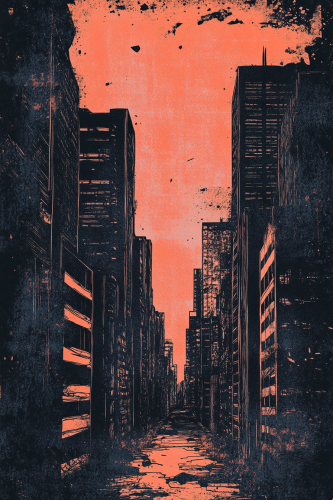 A vast city stretches across a desolate desert landscape, built upon the remains of an ancient cemetery. Massive, weathered tombs resembling early pyramids and mastabas are scattered across the terrain, some transformed into homes or workshops. Mummified remains are preserved in niches within the houses, an everyday sight for the inhabitants. Towering rock-cut tombs dot the surrounding cliffs, their grandeur diminished by the dry, oppressive air. Throughout the city, old sarcophagi serve as tables or storage. The city’s architecture blends ancient stone with makeshift additions, creating a labyrinthine sprawl of alleys and courtyards. The dimness contrasts with the occasional flicker of firelight or shadows moving silently. --v 6.0