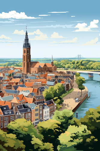Berling during sunrise, flat illustration, not too complex, modern, 4k, epic composition, flat vector art illustration, long shot --no text, fonts, letters, words, watermark --ar 5:7