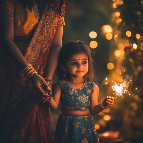 Visually appealing and festive photos of families with a mom, dad, and two young children in festive outfits on a black background with gold paper garlands in a Christmas theme --v 6.1