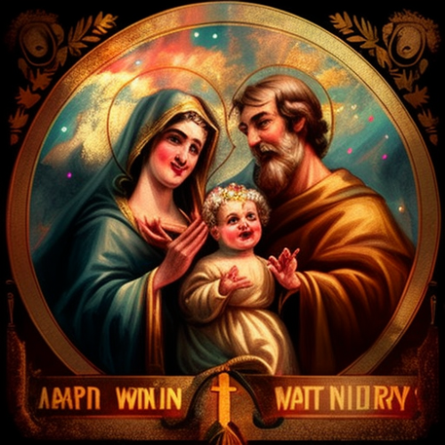 God, Mother marry, Father Joseph celebrating blessed happy new year --v 4