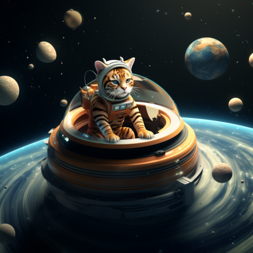 make a cartoonish 3d saturn with a jaguar floating in the space using an astronaut helmet, make saturn in the center and the jaguar small