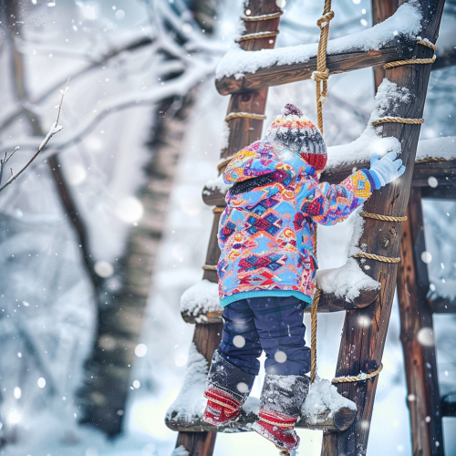 Winter scene with a young child around 6-8 years old, bundled up in a warm coat, hat, and scarf, holding a colorful insulated thermos cup in a snowy park. Soft snowflakes falling around, and snow-covered trees in the background. The child’s thermos has a playful winter-themed design with snowflakes and animals, matching the winter vibe. The child is smiling with rosy cheeks, looking excited. The mood is cozy and joyful, with soft lighting that captures the magic of winter –– photorealistic, gentle colors, winter wonderland aesthetic.