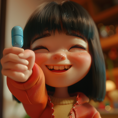 Chinese girl with blue pill