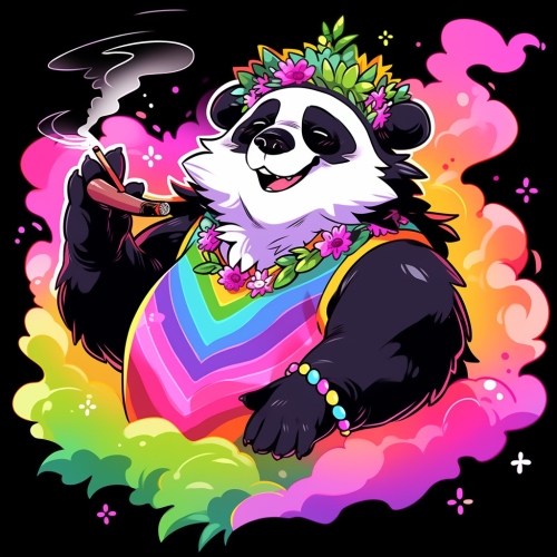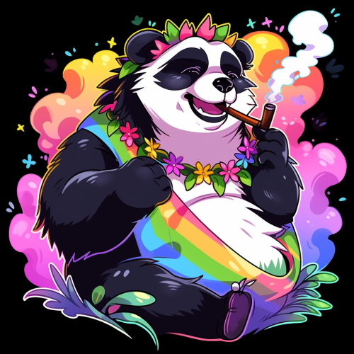 jaguar humanoid wearing hippie open rainbow tie dye vest, bell bottom jeans, rose circle glasses --niji 5