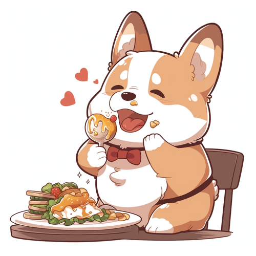 Corgi cute simple Action: Waving Dress: Casual Expression: happy digital drawing cartoon sticker image black border color full body flat texture cartoon style Transparent Background 2D --niji