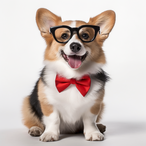 a corgi dog, wearing glasses, dressed as a laywer, full body, transparent background, full hd, realistic