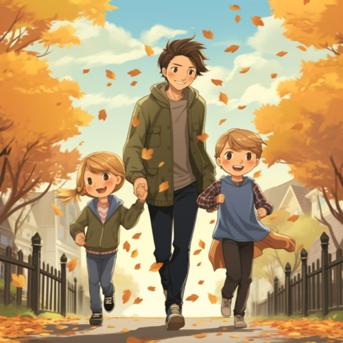 A modern house surrounded by lush greenery, showcasing a vibrant natural environment. In front of the house, a joyful family of four--a mother, father, and two children--are facing the house, radiating happiness and togetherness. The scene is filled with bright sunlight filtering through the trees, creating a warm and inviting atmosphere. The design of the house reflects sustainability, featuring large windows, a green roof, and solar panels. The family's expressions convey fun and love, capturing the essence of community and integrity. This super realistic image invites viewers to envision themselves in this idyllic, hope-filled setting. --ar 16:9 --v 5.1 --s 750 --style raw