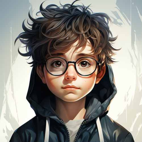 cartoon kid with glasses, big head, hoodie, sketch style, Pencil art --s 750