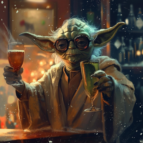 lego familly showing the father, thw mother and two boys 8 and 10 years old celebrating new year 2024 show text "Bonne Année 2024"
