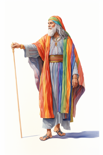 drawing of ancient Assyrian senior woman with rainbow-colored clothes, full body, full perspective, plain white background, --aspect 2:3