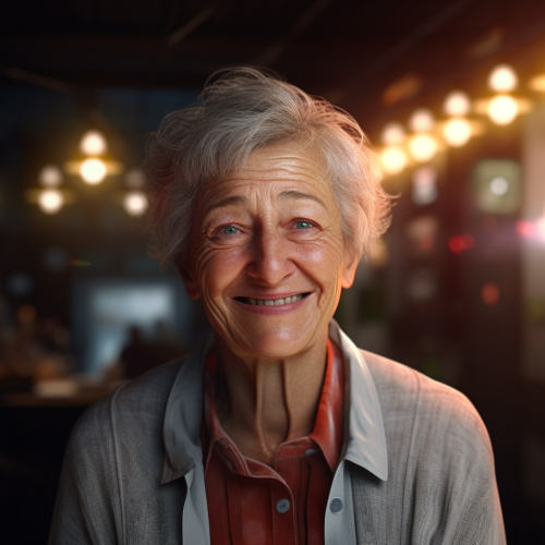 cute elderly woman with a beautiful smile hyper-realistic, cinematic lighting, 4k, v5-2