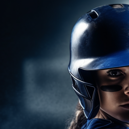 a young female baseball player practicing his drills and training. Wearing a blue uniform. Monochromatic image. Cinematic, ultra-realistic, hyper-realistic. 32k