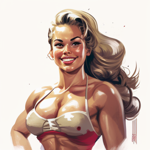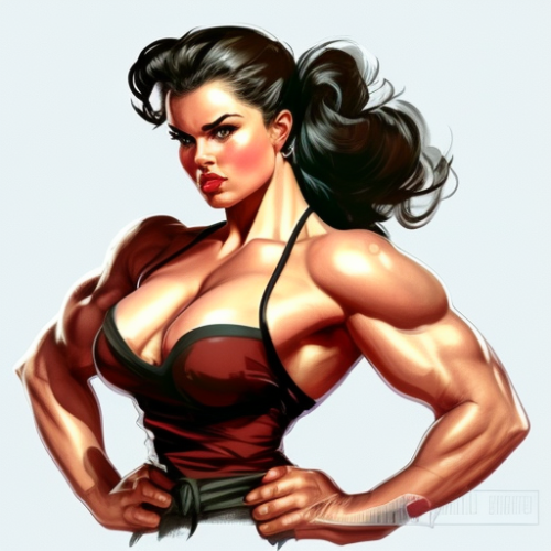beautiful pin up mucle girl, flexing her bicerps, white background, realistic --v 4 --s 750