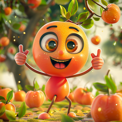 An adorable animated character based on a jujube fruit, Big sparkling eyes and a wide, friendly smile, its little hands giving a thumbs up, The character is surrounded by tiny sparkling jujube fruits like stars, creating a magical feel, A vibrant and joyful atmosphere that captures the heartwarming essence of the jujube, cartoon animation style, Bright and bold colors with smooth outlines for a child-friendly appeal, --ar 1:1