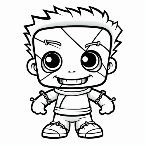 cartoon, kawaii, coloring page for toddler, happy baby frankenstein, bold black lines, white background, simple