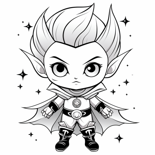 cartoon, kawaii, coloring page for toddler, moon warlock, bold black lines, white background, simple