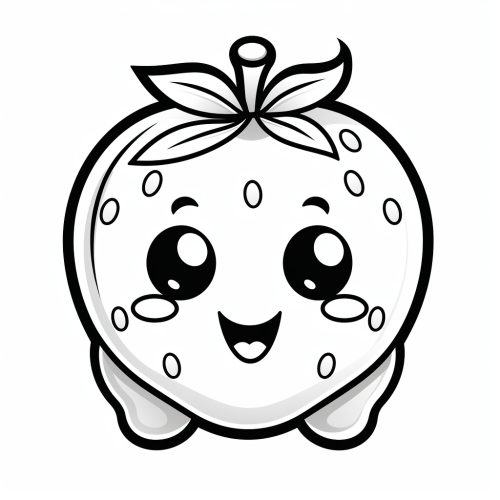 a friendly and happy strawberry, no round face, coloring page for kids, very low detailed, thick oulines, isolated, white background, no greyscale