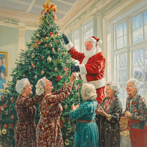 Eine fröhliche Gruppe von Schülern macht einen Ausflug auf ein eisstockschießenbahn und spielt eisstockschießen, auf einem traditionellen europäischen Weihnachtsmarkt voller Holzstände, die mit festlichen Lichtern und Dekorationen geschmückt sind; Die Schüler sind warm für den Winter gekleidet, lächeln, halten Festtagsleckereien in der Hand und spielen eisstockschießen. Der Schnee fällt sanft und schafft eine magische Atmosphäre. Die Szene fängt mit leuchtenden Farben und warmer Beleuchtung den Geist der Weihnachtszeit