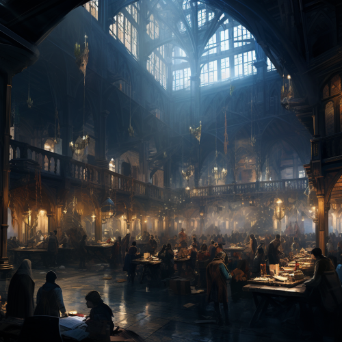 Avada Kedavra, student wizards duelling in Hogwarts great hall --ar 20:10 --v 5.2