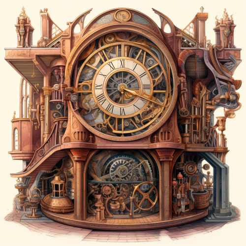 in frank frazetta's style : In the realm of fantastical steampunk, a clockwork hunter stalks the cogs and gears of a sprawling city, their mechanical limbs allowing for agile movement and precision. With a monocle affixed over a glowing ocular implant, this relentless tracker stands ready, a blend of advanced technology and keen survival instincts, poised to capture or eliminate their quarry amidst the intricate clockwork landscapes.
