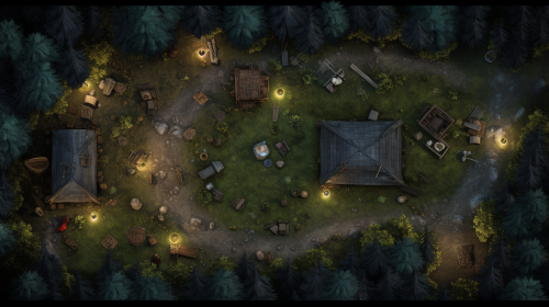 Photo of 3 tents in the middle of a forest in autumn during sunrise with a bonfire in the middle shot by Sony 4K and 8K Ultra HD camera --style raw --s 750
