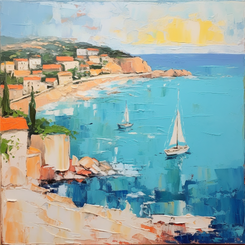 oil painting minimalistic abstract inspiring elegant st tropez seascape