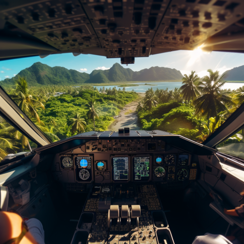 blue hawaii cocktail, tropical landscape in the background