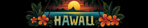 create image of the word "HAWAII", Patrick Gleason, clean, simple, black background, professional tshirt design vector --ar 42:8