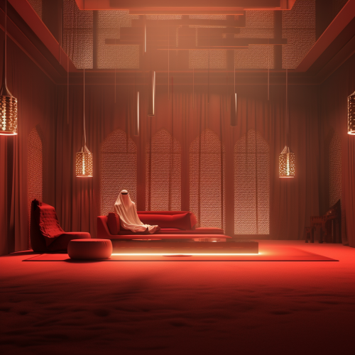Photorealistic hd resolution image of a large sitting room in a modern villa in Maiorca. Walls and floor are in cream resin with some carpets in sisal natural colour. There is a high ceiling with some bleached wooden beams. On the walls there are some modern minimal appliques. In one of the walls there are some niches with art objects and art books.There are modern sofas in natural linen fabrics. In front of the sofas there is a fireplace . Close to the fireplace there are some logs of wood for the fireplace