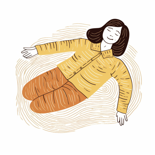 happy relaxed female shape, minimalistic linocut style, very simple, vector graphic, grainy texture, pastel warm colors, --v 5.0