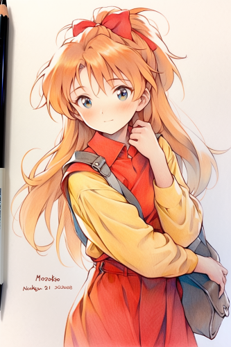 masterpiece, best quality, faded pastel illustration of asuka langley soryu --ar 2:3 --niji 5 --style cute