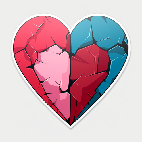 a heart that is divided into four quarters; the first quarter is cracked; the second quarter is a mended; the third quarter is shiny; the fourth quarter is full of love.