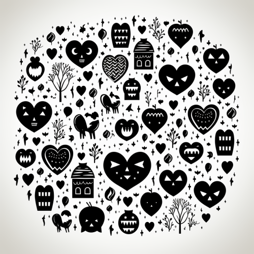 svg style, black and white, flock of christmas elements in the shape of a christmas ornament, simple design, isolated on white background, simplified --no gradients, shadows, colors --v 5.2 --s 50