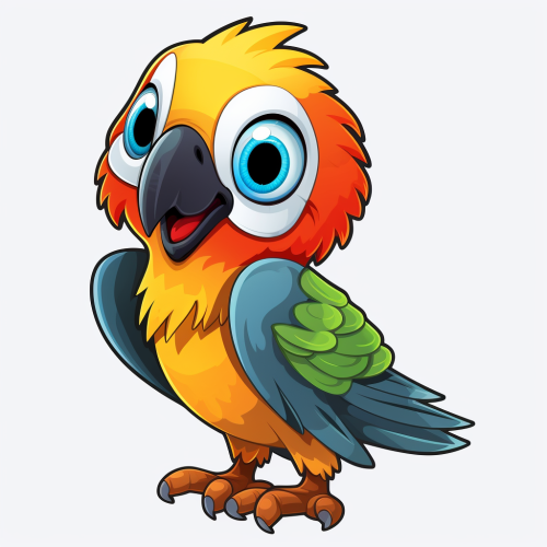 cute parrot Sticker, Sticker, pixar Art, cartoon, Vector, White Background, Detailed--16:9