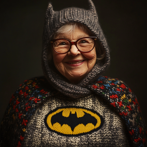 Elderly Polish grandmother wearing 1940s fashion with animalistic bat ears. Angry expression. Vintage, dramatic lighting, deep shadows, dangerous mood, detailed facial features, dynamic pose, blank background --v 6.0