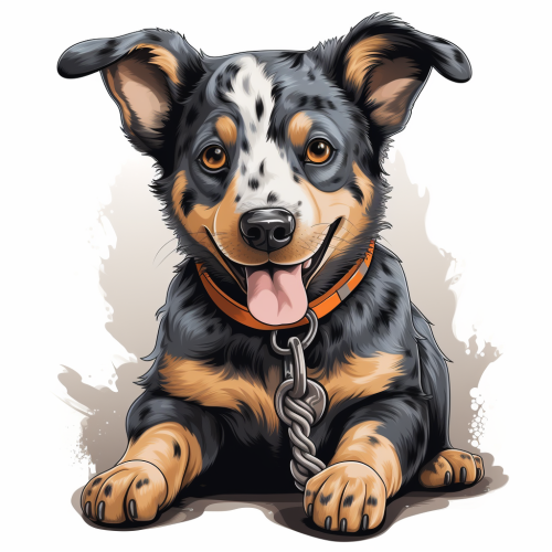 cartoon black silver apricot Australian cattle dog Australian Shepard mix with a detailed rope leash