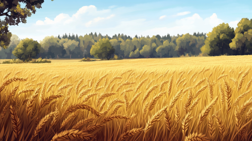 one barley string in a barley field , golden , sunny illustration , realistic , no trees , only golden field , light , day time , sunny, zoomed in , closeup --ar 16:9