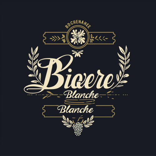 a logo for the wording "Biere Blanche" in the style of kronenbourg 1664 and hoegaarden beer. The logo will be made of a modern gothic font with a fleur de lisse in the background, minimal colours, minimal details, vector, commercial logo --v 6.0
