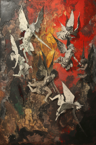 A celestial battle between angels and demons. ar 3:2 niji 6