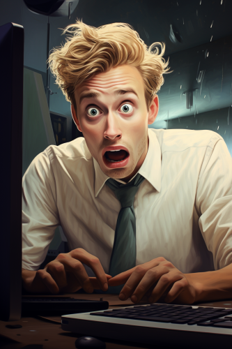 portrait of a young blonde man, shocked, just found out he was fired, office setting, digital painting, --ar 2:3