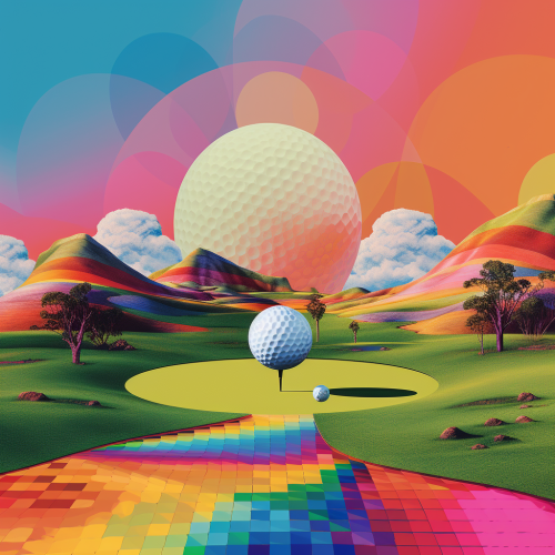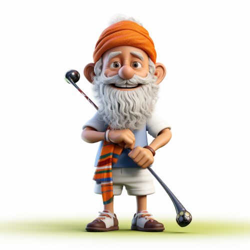 Adult Golf Player playing in front of camera , Cartoon Portrait, Funny Golf Portrait, Caricature, Golf Caricature, background Golf Court --style raw
