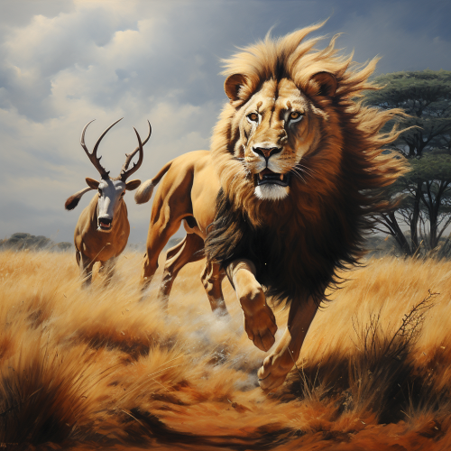 Hercules in an intense battle with the Nemean Lion, medium: brush stroke art, style: reminiscent of Renaissance paintings with a touch of modern flair, lighting: dramatic chiaroscuro highlighting the muscles and tension between the two figures, colours: earthy tones with splashes of gold and deep reds, composition: shot with a Canon EOS 5D Mark IV DSLR camera, EF 85mm f/1.8 lens, capturing a close-up of the struggle, ensuring every brush stroke detail is visible, resolution: 16k, ISO 100, shutter speed 1/125, with a focus on the fierce expressions and intricate details of the battle --ar 16:9 --v 5.1 --style raw --s 750.