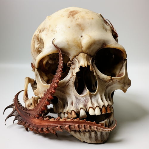 a hermit crab hiding inside a skull, white background, dungeons and dragons art