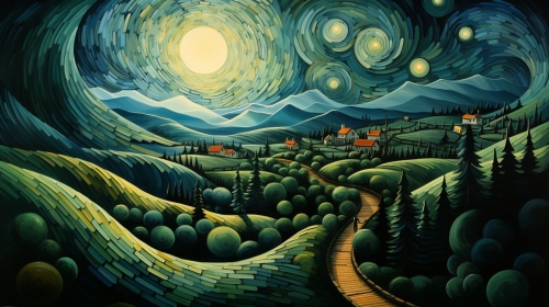 impressionist Fibonacci spiral landscape, green hills --s 250 --ar 16:9