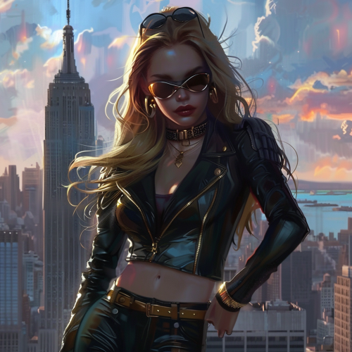 It looks like a New York American comic book hero, female, cool, Manhattanville can be seen.