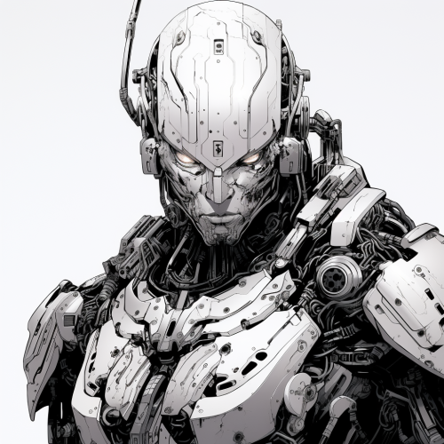 A cyborg with a gun instead of his face, super-hero black and white Character design by Hiroya Oku