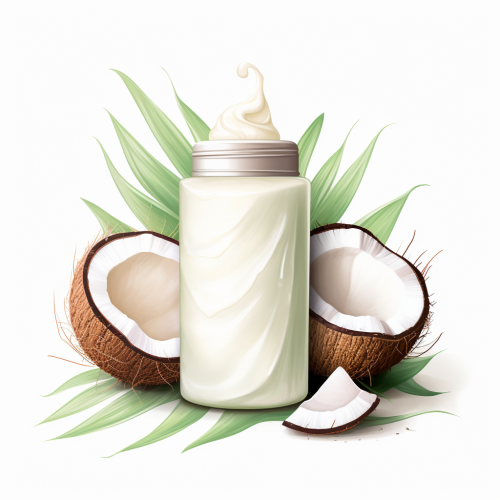 digital Illustration, luxury body lotion, coconut, green beige white, isolated on white background, procreate