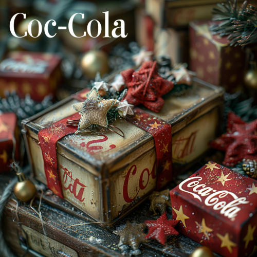 Gift box with a bow, inside there are children's toys from "Coca-Cola", ultra-realistic, super quality, real photo --v 6.0 --s 750