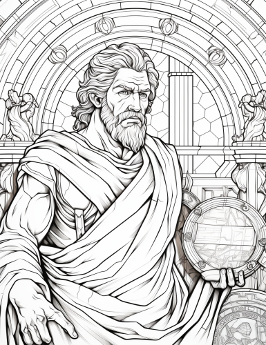 coloring page for adults, hephaestus, mandala style, black and white only, thick lines, no shading, high detail, high quality, high resolution --ar 17:22