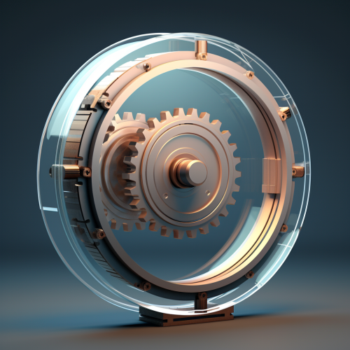 circular disk shaped contraption, small gears, realistic, product photo, high resolution